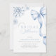 Set den Ton für ein magisches Fest mit diesem Winter Blue Bow Bridal Dusche Einladung. Dieses elegante Wintermotiv ist mit weichen, blauen Wasserfarbenbändern und glitzernden Schneeflocken gestaltet und eignet sich hervorragend für die Bewunderung der Braut. Eine schicke und zeitlose Wahl für ein Brautparty in der kalten Jahreszeit.