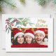 Diese Weihnachtskarte ist einfach und elegant. Es bietet Ihr Foto mit Aquarell Winterbotanicals. Die minimalistische Begrüßung lautet "Frohe Weihnachten" in stilvoller Goldskripttypografie. Original Wasserfarbe © Michele Davies.
