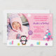 Ein süßes Winterpinguin-Design, perfekt für eine WinterGeburtstagsparty! Fügen Sie das Foto Ihres Kindes und Ihren eigenen Text hinzu. Vollständige Linie der Koordinaten in unserem Geschäft verfügbar.
