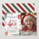 A charming winter-themed first birthday invitation featuring festive cocoa artwork, candy canes, snowflakes, pine greenery, and a warm holiday color palette. The design includes space for a personalized photo, making it perfect for seasonal or Christmas birthday celebrations. Ideal for girls’ first birthdays and cozy winter party themes with customizable event details.