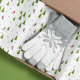 Dieses Urlaubsmuster zeichnet sich durch ein modernes, einfaches Muster von Skifahrern in einer Winterlandschaft mit grünen Kiefern und Schneeflocken aus. Das perfekte Geschenk für Skifans!