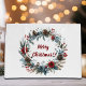 Ein elegantes Winterkranzdesign mit Weihnachten-Blume, Kiefern und Winterbeeren auf einem Tannenarm.