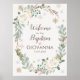 Begrüßungsschild für die Taufe mit den Schneeflocken und Blätter der Winterblüten, Golden und Silber.