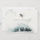 Winterfrostwald Weihnachtskarten. Happy Holidays Text vollständig anpassbar. Schneewald mit Aquarellspülhintergrund. Blumenkranz auf der Kartenrückseite. Mit einem kleinen Wintervogel, die Titmaus mit Tufted auf der Kartenvorderseite.