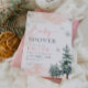 Winter Girl Baby Dusche Einladung mit Schneeflocken Kiefernbäumen, und ein boho Design.