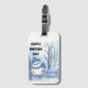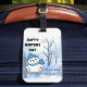A charming winter-themed illustration featuring a cute cartoon polar bear in a blue hat and scarf, set against a snowy forest background with the punny message "Oh it's snow much fun."