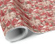 Tauchen Sie ein in ein ruhiges Winterwunderland mit diesem charmanten Urlaubsmuster mit schneebedeckten Häusern und Bäumen, die in festlichen Lichtern an einem Elfenbeinrot-Hintergrund leuchten.