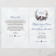 Chic Berries Bullfinch Winter Wreath Wedding Program Romantische Kartendesign mit einem Winterkranz (Tannenzweige, rote Beeren und Blattwerk) mit zwei Vögeln (Bullfinch), die Platz für die Initialen von Braut und Bräutigam machen, alle auf weißem Hintergrund mit verblassten Schneeflocken. Verwenden Sie das Tool Anpassen, um Ihre Informationen hinzuzufügen. Sehen Sie auch meine Winter Life Events Celebration Collection.