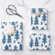Winter Holiday Blue White Trees Pattern Gift Geschenkpapier Set