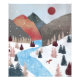 Eine wunderschöne Landschaft mit einzigartigen Texturen, die eine Fluss- und Berglandschaft zeigen, mit einem Fuchs in der Md-Jump-Jagd im Schnee in Rot, Grün, Blau und Beige.