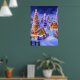 Ein Lebkuchendorf im schneebedeckten Berg, Schnee auf dem Dach, Baum im Dorf, eine coole Kunstkunst in einer Winterlandschaft mit Sternen am Himmel. Das ist eine künstlerische KI.