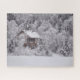 Winter-Kabinen-Schnee umfaßte Baum-Foto-Puzzlespiel
