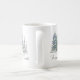 Eine schlichte Winterschneelandschaft in sanften Aquarelltönen in Blau, Grau und Grün zeigt die Ruhe in der Natur. Schöne Kalligraphie Weltfrieden Text fügt moderne künstlerische Anziehungskraft in das Design. Stellen Sie sich vor, Sie trinken Kaffee oder Tee an einem kalten Wintertag und Gefühl die Stille, die diese künstlerische Tasse vermittelt.