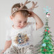 Winter Magic personalisierte Baby T - Shirt mit einem Schneemann, Bäume , ein Baby und ein paar niedliche Tiere wie ein Fuchs , Hund, Rabe, ein Eichhörnchen und eine Eule. Aktualisieren Sie den Namen Ihres kleinen. Alle Zeichen wurden mit Aquarellfarbe gemalt.