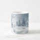 Volle wunderbare friedliche Winterszene fährt um die gesamte Tasse fort. Vervollkommnen Sie als Set für Kaffee oder heißes cocca!