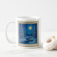 Snowy Night Forest Scene. Wrap your hands around the calm of a winter night with this enchanting moonlit forest mug. A glowing full moon lights up the snowy landscape, where pine trees stand tall and a frozen river winds through the peaceful scene. This cozy design, framed in a soft ivory tone, evokes quiet magic and serene wonder.