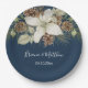 Winter Navy Blue Elegante Script Hochzeit Pappteller
