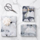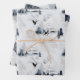 Diese Winter- oder Weihnachtsblätter haben eine Aquarellkunst-Szene mit einem Waldhirsch, einer Eule im Flug, immergrünen Bäumen, schneebedeckten Bergen und Vollmond, die ein rustikales Naturmuster auf einem Hintergrund aus schneeweißem, silbergrauem oder dunkelblauem Hintergrund schafft. Jeder wird diese elegante Geschenkpackung Liebe.