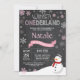 Winter Onederland 1er Anniversaire Invitation. Bonhomme de neige. Flocon de neige rose et blanc. Premier anniversaire. Fille 1er Anniversaire Invitation. Arrière - plan de tableau de bord. Noir et blanc. Pour plus de personnalisation, cliquez sur le bouton "Customiser" et utilisez notre outil de conception pour modifier ce modèle.