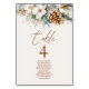 Dies ist eine Winter Pine Tree Floral Hochzeit Tischnummer mit Namen!