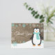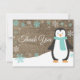 Rustikale Winter Pinguin Snowflake Aqua Danke Karte. Aqua Penguin. Hintergrund Land Vintag Retro Barn. Schneeflocke Auqa. Liebe und Dank, schöne Skript-Schriftart. Fügen Sie Ihre Nachricht auf der Rückseite oder verlass leer und schreiben Sie Hand.