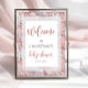 Winter Pink Silver Snowflakes Baby Dusche Willkomm Poster