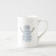 Vier Plätze in blasser Blues und Purpur sind mit Schneemännern mit Top-Hüten und Winterkleidung dekoriert, wie Rodeln, Schals und Fäustchen. Weiße Nähte fügen eine dekorative Touch hinzu, die dem sich wiederholenden Muster das Aussehen eines Steppdecks verleiht und ein sehr gemütliches Gefühl für den Winter schafft. Die Gestalt eines Schneemanns schafft eine Maske für das Design, um eine letzte saisonale Touch hinzuzufügen. Diese Tasse ist in Jumbo, Espresso, Knochen-China und Styles erhältlich.