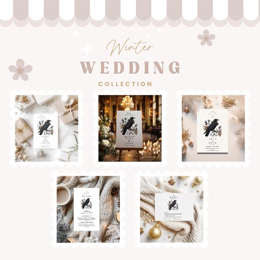 Ein äußerst elegantes Design mit einem schwarzen Rabe, der auf schneebedeckten Ästen steht und mit Winterkiefern, blutroten Heiligen und subtilen Schädelmotiven besticht. Diese gotische Winterhochzeit-Einladung verbindet dunkle Romantik mit ausgeklügelten saisonalen Details, perfekt für Paare, die eine launische, poetische Ästhetik annehmen. Das minimalistische Layout zeichne der auffälligen Illustration den Blick, während gleichzeitig ein ausgefeiltes Gleichgewicht und Raum erhalten bleiben. Eine einzigartige Wahl für nicht-traditionelle Hochzeiten, vor allem während der kalten Monate.