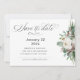 Die Kieferngrün mit weißen Rosen bilden eine elegante Blumenzettel. Weitere Akzentuierte mit subtilen Beeren und Kiefern. Kalligrafie ordnet das Design, um es einfach, aber effektiv voneinander zu trennen. Es ist feminin und stilvoll, mit einer bearbeiteten Palette von Weiß, tiefgrünem Kieferngrün und weichem Rot.
