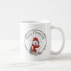 Winter (Rot) Altes Englisch Schafhund - Niedlicher Cartoon OES draußen im Schnee, mit einem roten Schal und Strick Hut/Kappe. Er sitzt vor einer Tasse dampfenden heißen Kakaos mit Marshmallows. Copyright © Angi Laframboise. Spaß, Urlaub, saisonale Hundeschenke für Hundefreunde.
