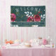 Blauer Begrüßungsbanner mit rot-bordeauxroten Rose, Blumenstrauß mit saisonalen Blättern, roten Beeren und Tannenfäden und Ihrem Firmennamen. ++++++++ Geeignet für Ferien / Weihnachten Party, Open House, Cocktails.