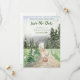 Save the Date mit diesem wunderschönen, schneebedeckten Set in einem bezaubernden immergrünen Wald und Bergen mit einer schmutzigen Straße, die zu einer rustikalen Scheunenkapelle mit modernen, klassischen Schriftart führt. Diese Designs können für jeden besondere Anlass individuell gestaltet werden. Ideal für Hochzeit, Brautparty, Verlobungsfeier, Geburtstagsparty und viele andere besondere Anlässe.
