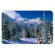 Magnet mit einem Foto von einer schönen Winterschneeszene in den Bergen gezeigt. 4x6 Größe. Bild