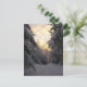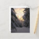 Winterhimmel Postkarte. Der Winter in New Hampshire zeigt schneebedeckte Bäume an einer schneebedeckten Straße und Sonnenschein auf Wolken.