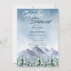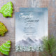 Winterpaare Duschdesign mit Aquarellfarben, die eine verschneite Bergwelt darstellen, und Pinienbäume in Blau- und Grautönen. Der Text kann leicht für ein einzigartiges Design für Ihren besonderen Tag personalisiert werden. Eine schicke Wahl für eine elegante Winterhochzeit in Berg oder Wald