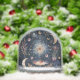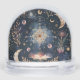 A unique snow glob features crescent moons, gold branches and other solstice elements on a celestial background.