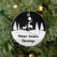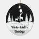 Eine schwarz-weiße Winterwaldszene mit zwei Hirschen unter Vollmond.