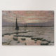 Künstlerin Birge Harrison. Pinks und Purples eines Wintersonnenuntergangs werden reflektiert und über zerbrochenes Eis verteilt, mit dunklen Booten, die vom gefrorenen Wasser gefangen werden