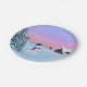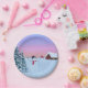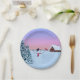 Acrylic painting of a cute snowman admiring a cardinal at sunset on Christmas eve