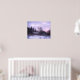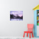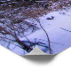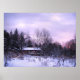 Dieses Poster zeigt eine Wintersonnenuntergangsszene. Ein rotes Haus ist in den Bäumen versteckt, und die Lichter scheinen im Inneren. Auf dem Feld hat sich reiner weißer Schnee aufgestaut. Die Wolken im Himmel leuchten mit Regenbogenfarben in Orange, Rosa, Gelb, Blau und lila.