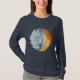 Depiction of a stylized globe in which two seasons meet—winter and autumn. On the left side, a delicate, frosty plant spreads out, symbolizing cold and tranquility. On the right side, autumnal leaves glow in warm shades of red and gold, embodying transition, passing, and change. The gentle division between the two halves is reminiscent of yin and yang, the balance between cold and warmth, endings and new beginnings.
