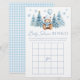 Ein klassisches Bingo-Spiel, das für eine Babydusche konzipiert ist und mit einem hübschen Teddybär mit niedlichem blauen Hut und Schal geschmückt ist. Er hält einen blauen Ballon, umgeben von Winterkiefern und Schneeflocken und dem Baby-Blue Gingham-Muster hinten. Gönnen Sie Ihren Gästen dieses wunderbare Spiel, das sich perfekt eignet, um Ihre Winterfeier mit viel Spaß und Spannung zu gestalten und gleichzeitig wertvolle Erinnerungen zu schaffen.