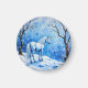Eine traumhafte Szene fängt ein Einhorn in einem Moment ruhiger Betrachtung inmitten eines sanften Schneefalls ein. Die Hauptfarben sind coole Blues, eisige Weiße und Silberflüster. Das Einhorn mit fließender Mähne und Schwanz wird mit etwas stärkerem Pigment dargestellt, um sich herauszustechen, während der fallende Schnee mit winzigen, zarten Spattermarken und leichteren Waschmitteln entsteht. Der Boden ist eine Mischung aus schneeweißen und blauen Schatten, mit nackten Laubäumen, die als weiche, verschwommene Linien im Hintergrund erscheinen, was die ruhige und ätherische Stimmung verstärkt. Die Gesamtwirkung ist zart und fast kristallklar, perfekt für einen ruhigen Innenraum.