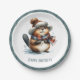 Geburtstagspapier-Teller mit einem Aquarellbiber. Wintervibes, Schneeflocken. Personalisierbar.