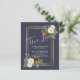 Wunderschöne weiße Rosen, Eukalyptus-Blätter, rustikale Kiefernfüße und ein goldener Rahmen auf diesem Winterhochzeitsartikel, der Teil einer größeren Kollektion ist, die Einladungen für Hochzeiten beinhaltet, speichern Sie die Daten, RSVPs, Etiketten, Geschenke, Schreibwaren und mehr. Für eine KOSTENLOSE Winterhochzeitplanung besuchen Sie bitte weddingdesignchic.com.