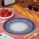 Celebrate Yule with convenient, unbreakable paper plates. This plate features the wheel of the year in winter colors. Lettering is white on a dark ombré blue to purple background, with holly sprigs accents.