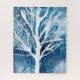 Winter theme blue and white watercolor painting of a white birch tree with snow background. Arty Original Artwork with a Christmas theme. Blue and white Christmas.
