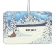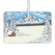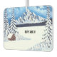 Eine Frische mit einer schönen Winterlandschaft inklusive schneebedeckter Kabine, Berg und immergrün. Hintergrund, Bild und Text können angepasst werden. Original-Kunstwerk von W.B.