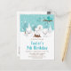 Diese niedliche und lustige Geburtstagsveranstaltung bietet eine bezaubernde Arktis-Fuchs-Familie in einer winterlichen Umgebung mit schneebedeckten Bäumen und einem blauen Vogel auf einem Zweig mit Heiligenbäumen. Im Hintergrund ist ein aquamariner, blauer grüner Himmel und fallende Schneeflocken. Der Text verbindet dekorative und serifenlose Schriftart für einen stilvollen und modernen Look. Dies ist perfekt für einen Weihnachts- oder Wintergeburtstag.