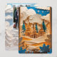 Diese bezaubernde Weihnachtskarte besticht durch eine geschichtete Winterszene im Papierschnitt mit schneebedeckten Hügeln, hohen Evergreens und einer gemütlichen Kabine inmitten treibender Wolken und fallender Schneeflocken. Die reiche Mischung aus goldenen Farbtönen, eisigen Weißen und tiefblauem Himmel schafft eine magische Urlaubsatmosphäre, die sich sowohl elegant als auch herzlich anfühlt. Ideal, um die Grüße der Saison zu verschicken, es fängt die stille Schönheit und das Wunder der Weihnachtszeit in einem verschneiten Wald ein. Fügen Sie Ihr Urlaubsbild auf der Rückseite hinzu und machen Sie es zu Ihrem eigenen.